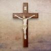 Krzyż drewniany wiszący z drewna egzotycznego – metalowy korpus
