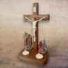 Korpus sprowadzany z Włoch i wykonany z żywicy. Unikalne wykończenie perizonium oraz korony w kolorze złotym dokonale komponuje się z brązem tego egzotycznego drewna. Całość wykonana z dbałością o szczegóły i z miłości do Krzyża.